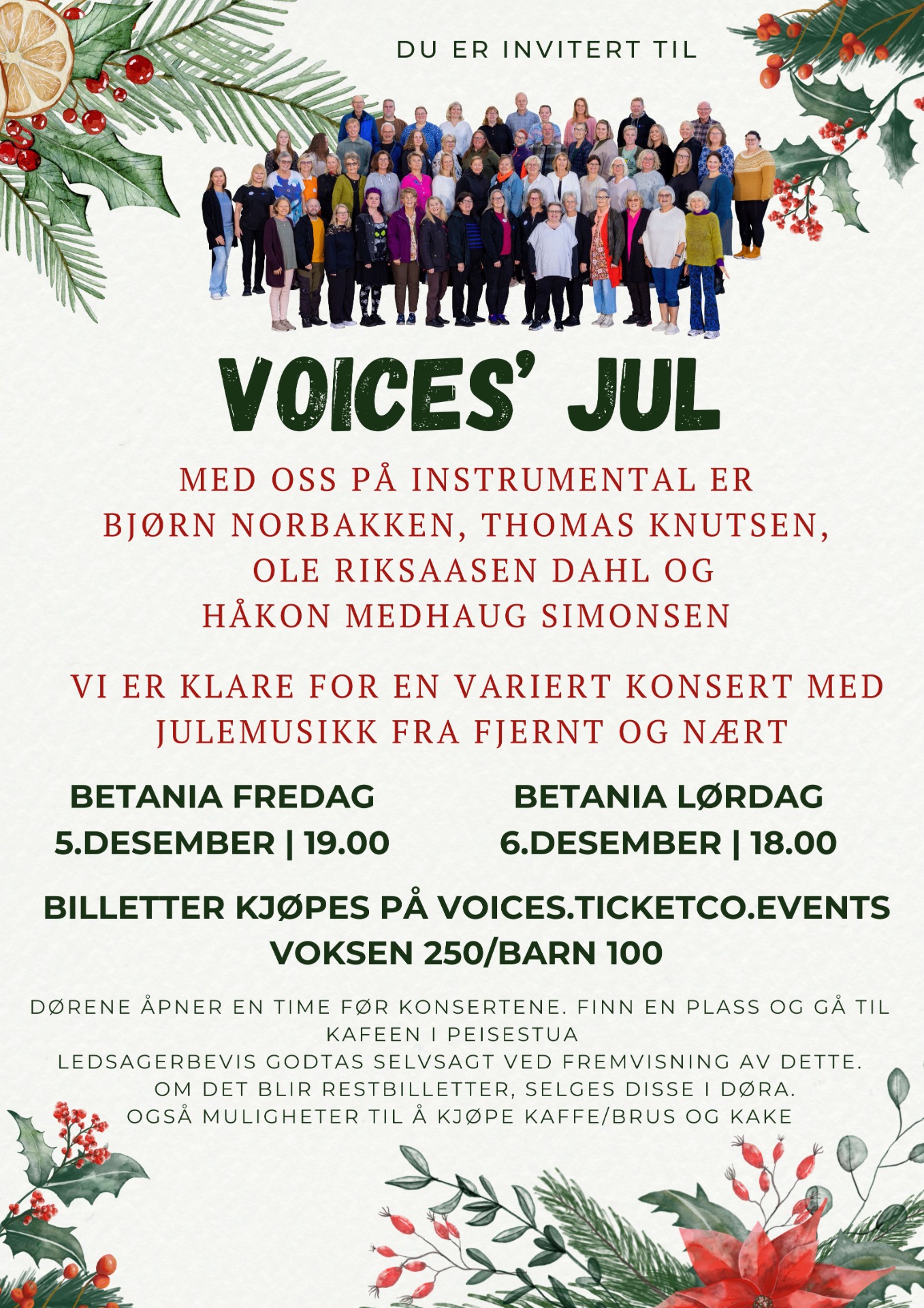 Lørdag 3.12 klokka 18.00 https://voices.ticketco.events/no/nb/e/julegleder_med_voices_loerdag
